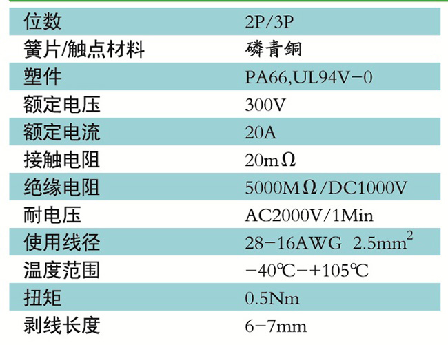 接線端子的絕緣材料用改性的尼龍(PA66),能達(dá)到或超過IEC947-7-1及EN60947-7-1標(biāo)準(zhǔn),阻燃等級達(dá)到UL94,V-0具有良好的電氣性能和機(jī)械性能。螺絲用高強度的鋼制成鍍鋅或鎳處理,導(dǎo)電體四方針用合金銅制成表面鍍錫,壓片采用彈性及極強的磷青銅表面鍍錫或鎳;壓線框用抗應(yīng)力裂縫腐蝕的合金銅制成,這些金屬表面還鍍錫或鍍鎳加以保護(hù)。設(shè)計完全符合IEC60947-7-1.GB14048.7等標(biāo)準(zhǔn)。